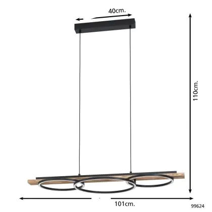 Beschrijving Eglo Pendelarmatuur Boyal Hout Zwart, Roestig 40.5W 3600lm - 830 Warm Wit | Dimbaar