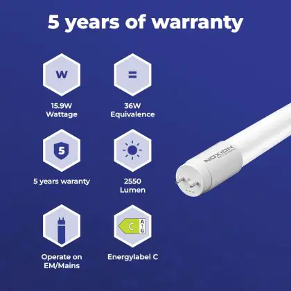 Beschrijving Noxion LED Buis T8 Avant Extreme (EM/Mains) Ultra Output 15.9W 2550lm - 830 Warm Wit | 120cm - Vervangt 36W