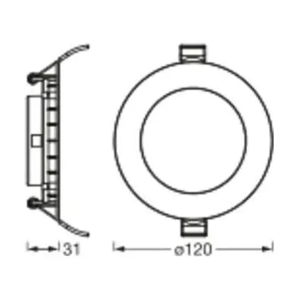 Beschrijving Osram LED Downlight Recess Slim Wit 8W 550lm 110d - 830 Warm Wit | Zaagmaat 120mm - IP20