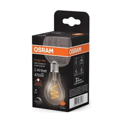 Beschrijving Osram Vintage 1906 LED Classic Slim E27 Peer Filament Helder 4.6W 470lm - 922 Zeer Warm Wit | Beste Kleurweergave - Dimbaar - Vervangt 40W