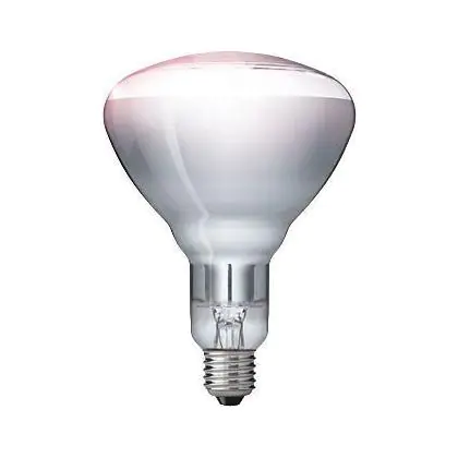 Deze gloeilamp van Philips is een infraroodlamp. De infrarode straling van deze lamp is voor het blote oog niet te zien maar levert warm licht op. Infrarood wordt voor verschillende doeleinden gebruikt. Onzer andere in een spot.