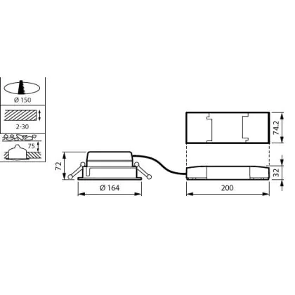 De installatie van deze compacte Philips LuxSpace downlight is erg eenvoudig. Dat komt onder meer door de doorvoerconnector en de meegeleverde driver. Kijk voor het installeren altijd even of de inbouwdiepte (74mm) en de zaagmaat (150mm) in het betreffende plafond overeenkomen met de maten van dit product. De twee sterke rvs-klemmen zorgen ervoor dat dit Philips armatuur stevig op zijn plek blijft zitten. Je kunt deze downlight rechtstreeks aansluiten op de netstroom (220-240 Volt).