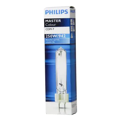 De Philips CDM-T lampen hebben een hoge lichtopbrengst en de kleur is zeer stabiel gedurende de volledige levensduur. De Philips CDM-T 250W 942 G12 is een compacte gasontladingslamp met een G12 lampvoet. De lampvoet maakt het zeer gemakkelijk om uw lamp te vervangen. Het enige wat u hoeft te doen, is de lamp in het armatuur te klikken.
