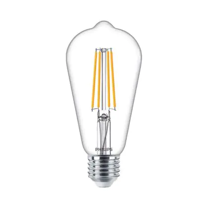 Naast de kleurtemperatuur speelt het uiterlijk van de lamp een belangrijke rol. Ga je voor mat glas of liever helder/gekleurd glas, waardoor je het LED filament (de oranje kooldraad) goed kunt zien? Heb je ook al nagedacht over de vorm en grootte? Deze E27 lamp heeft als vorm: Edison. Ten slotte heb je bij ons een zeer ruime keus aan dimbare E27 LED lampen. Hierbij heb je een LED dimmer nodig. Wil je extra informatie over E27 LED? Lees dan onze blog: Hoe vind ik de juiste E27 lamp?